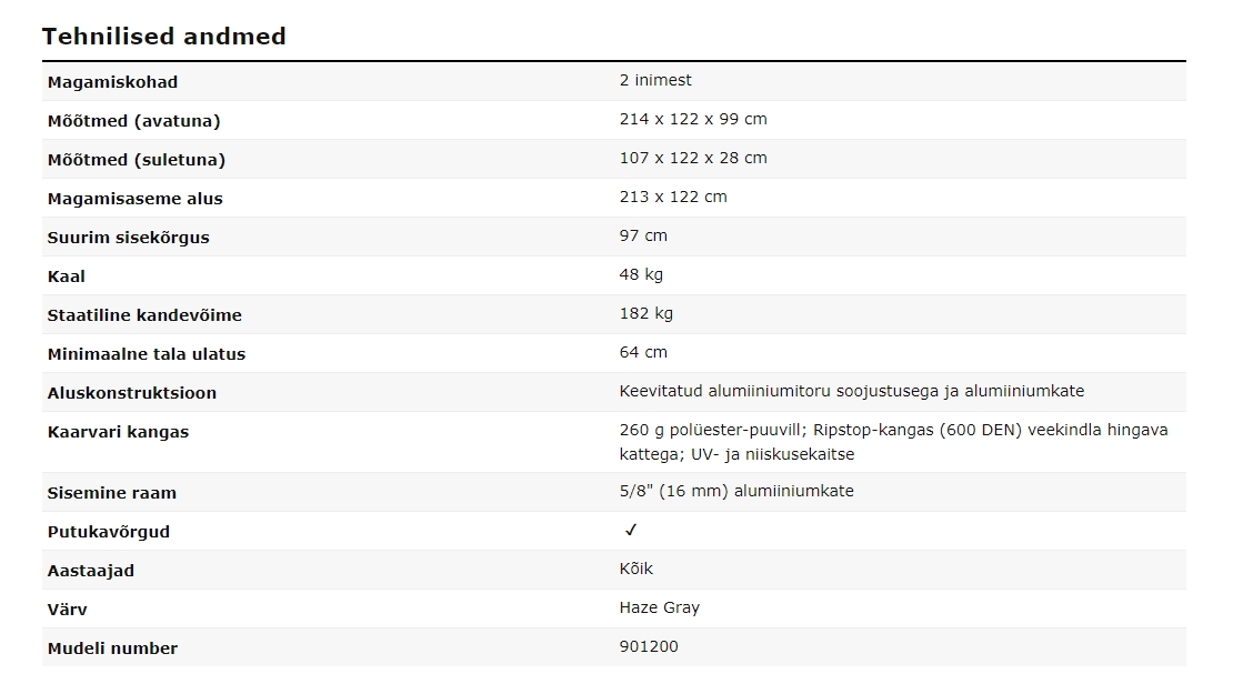 Tänu ilmastikukindlatele vastupidavatele materjalidele on see telk ideaalne iga aastaaja seiklusreisideks.