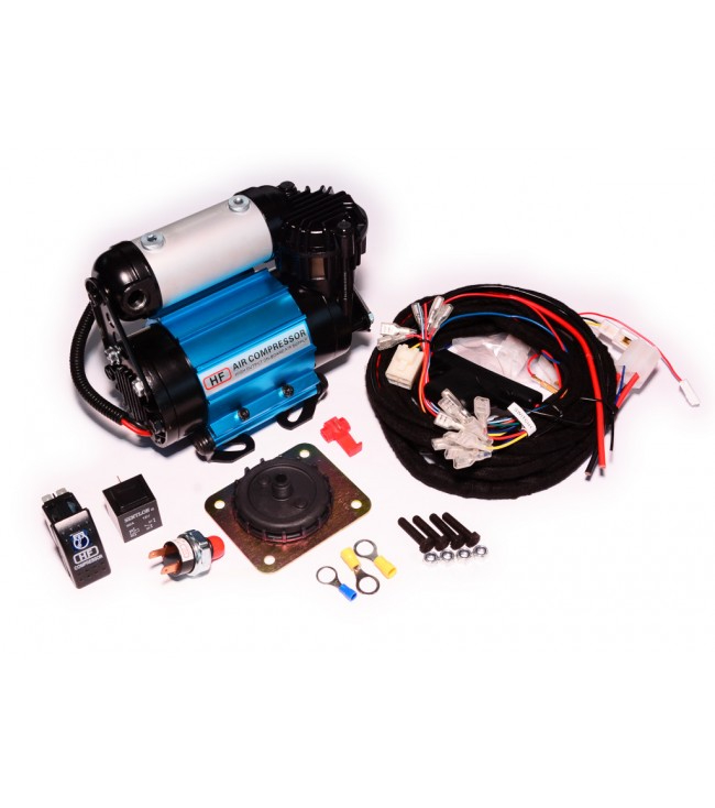 Kompressor sobib eelkõige kasutamiseks õhulukkude lülitamiseks ja vajadusel ka rehvide pumpamiseks. Komplektis kõik vajalik, et ühendada õhu pealt töötavate lukkudega.