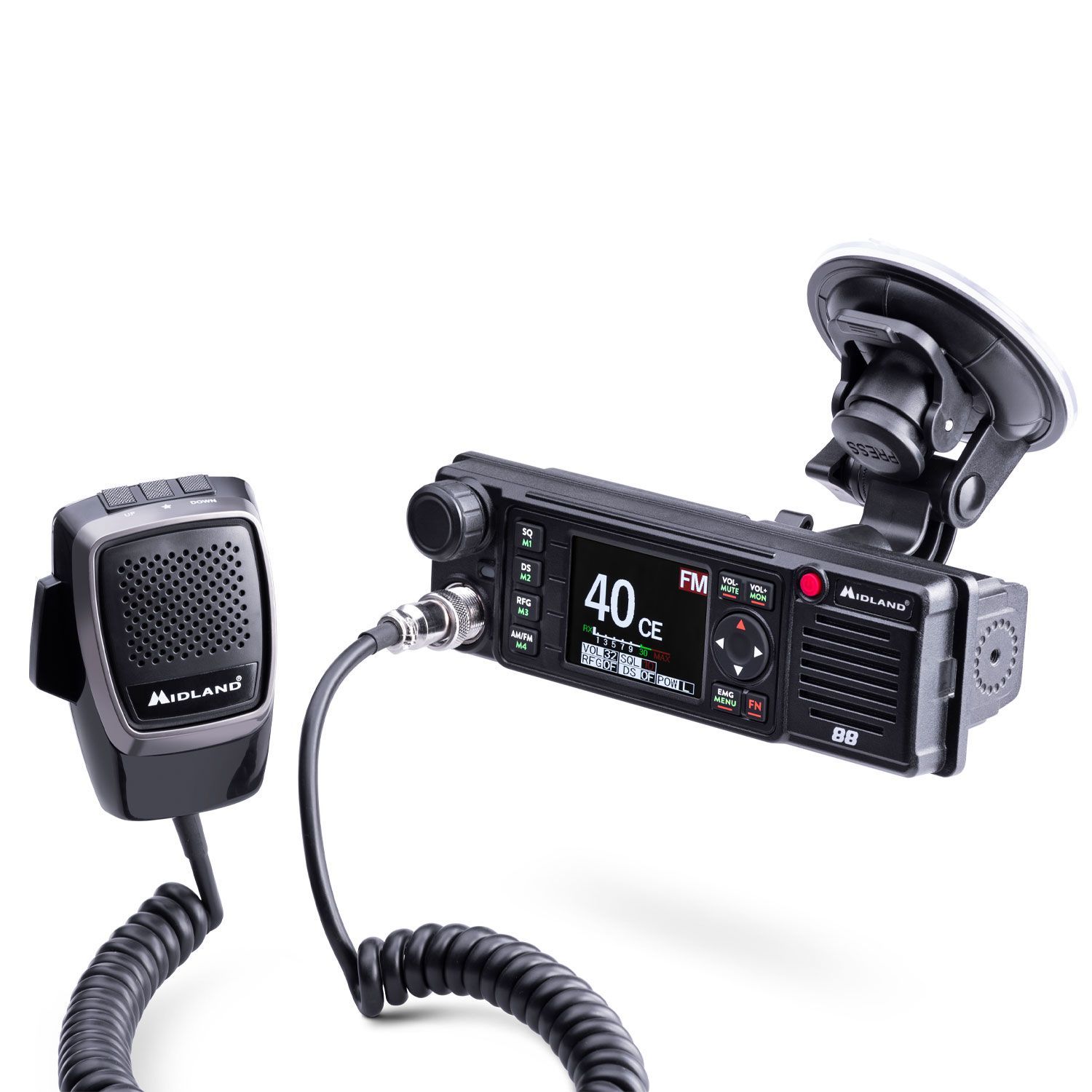 M88 on mitmekülgne CB-raadio, mis sobib igale pinnale ja DIN-kambrisse, on 12/24 V toiteallikaga ja varustatud kaitsega antenniahela valestiühendamise vastu. Kaasasolevate lisatarvikutega saab selle üles riputada tuuleklaasile või asetada armatuurlauale. M88 lülitub automaatselt sisse ja otse mikrofoni peal olevate Up/Down/Priority kanaliklahvidega saab kanalit vahetada silmapilkselt. Mitmerealine, nii FM/AM ja sobib suhtlemiseks ka väljaspool riigipiire, kohanedes Euroopa sagedustega. Alumiiniumist korpus muudab seadme tugevaks ja vastupidavaks ning selles on suur TFT-värvinäidik koos nähtavate teadetega.
